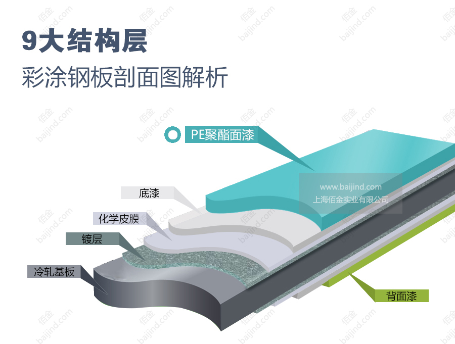 PE聚酯彩涂板附著力良好,在成型性和室外耐久性方面范圍較寬, 耐化學(xué)藥品性中等。廣泛應(yīng)用于普通工業(yè)廠房及倉儲(chǔ)物流庫房的圍護(hù)系統(tǒng)中。