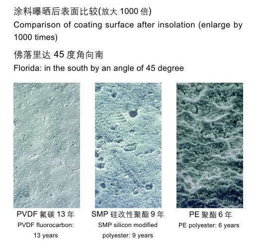 寶鋼提供的硅改性聚酯彩涂產(chǎn)品(SMP)和高耐候聚酯彩涂產(chǎn)品(HDP)均是較普通聚酯彩涂產(chǎn)品耐候性更優(yōu)的鋼板。寶鋼對高耐候聚酯彩涂鋼板提供15年的質(zhì)量保證。