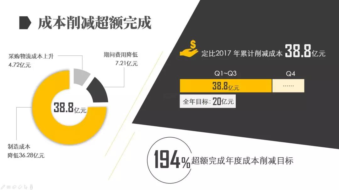 今年前三季度,寶鋼股份累計完成商品坯材銷量3511.6萬噸;累計成本削減38.8億元,超額完成年度目標;累計實現經營活動凈現金流367.5億元,同比增長179.9%;三季度末,資產負債率降為47.6%。