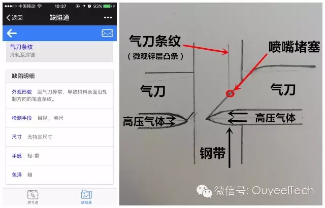 刷墻時滾筒不平整會出現粉刷條紋,熱鍍工藝中沒有固體的刮刀,而是使用氣刀中噴出的高壓氣體抹平鋅層。氣刀堵塞,壓力不均就會出現氣刀條紋。