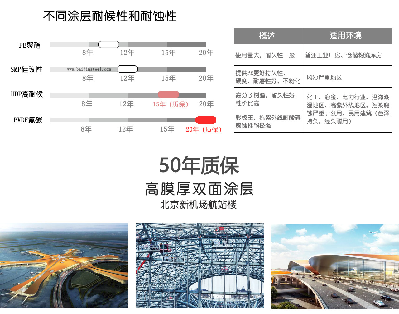 注:本網(wǎng)站數(shù)據(jù)部分來源寶鋼彩涂板企業(yè)標(biāo)準(zhǔn)BQB/440 -2014 ,寶鋼彩涂板產(chǎn)品手冊(cè),及工程案例。